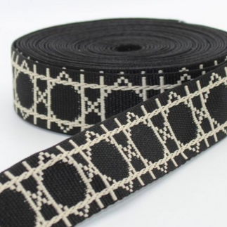 Et pour la bandoulière, j'ai décidé de ne pas faire la bandoulière dans le même tissu que le sac comme ce qui est recommandé dans le tuto. J'ai préféré faire une bandoulière à l'aide d'un morceau de sangle. J'ai acheté cette sangle chez Mondial Tissus également. N'arrivant pas à me décider, j'ai acheté 3 modèles de sangles différents comme ça je pourrais changer de bandoulière en fonction de mes tenues ou de mes envies ! J'aimais beaucoup celle-ci car je trouvais qu'avec son imprimé géométrique style cannage elle me faisait penser au style de cabas tissu de chez Dior très en vogue en ce moment.